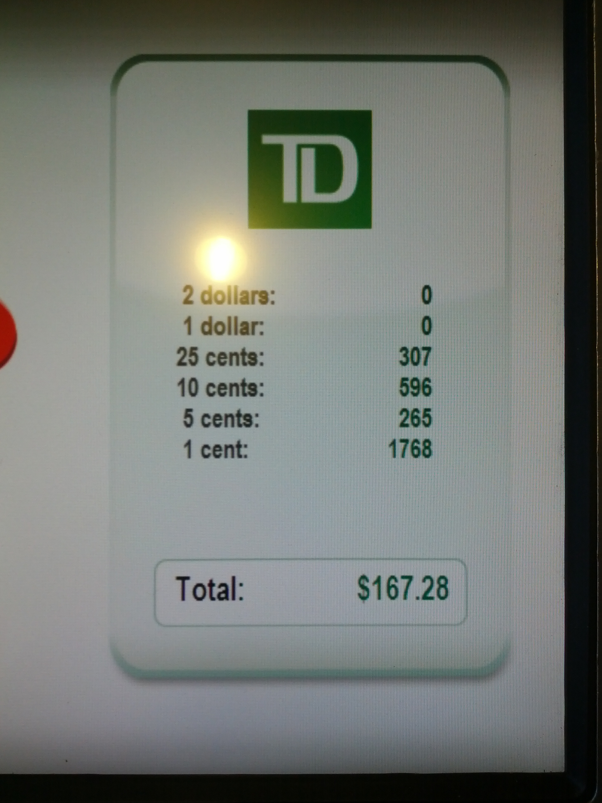 I dropped off coins I’d been collecting since roughly 2004 and ended up leaving with an extra $167 in my account. It’s amazing that I had around 1800 pennies saved up.